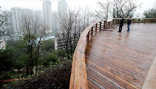 4個(gè)觀景平臺(tái)面積共4521平方米,由花崗巖或防腐木鋪裝,利用城市制高點(diǎn),體現(xiàn)城市陽臺(tái)理念,游人可在公園內(nèi)飽覽紅巖村、嘉陵江及江北鴻恩寺盛景。